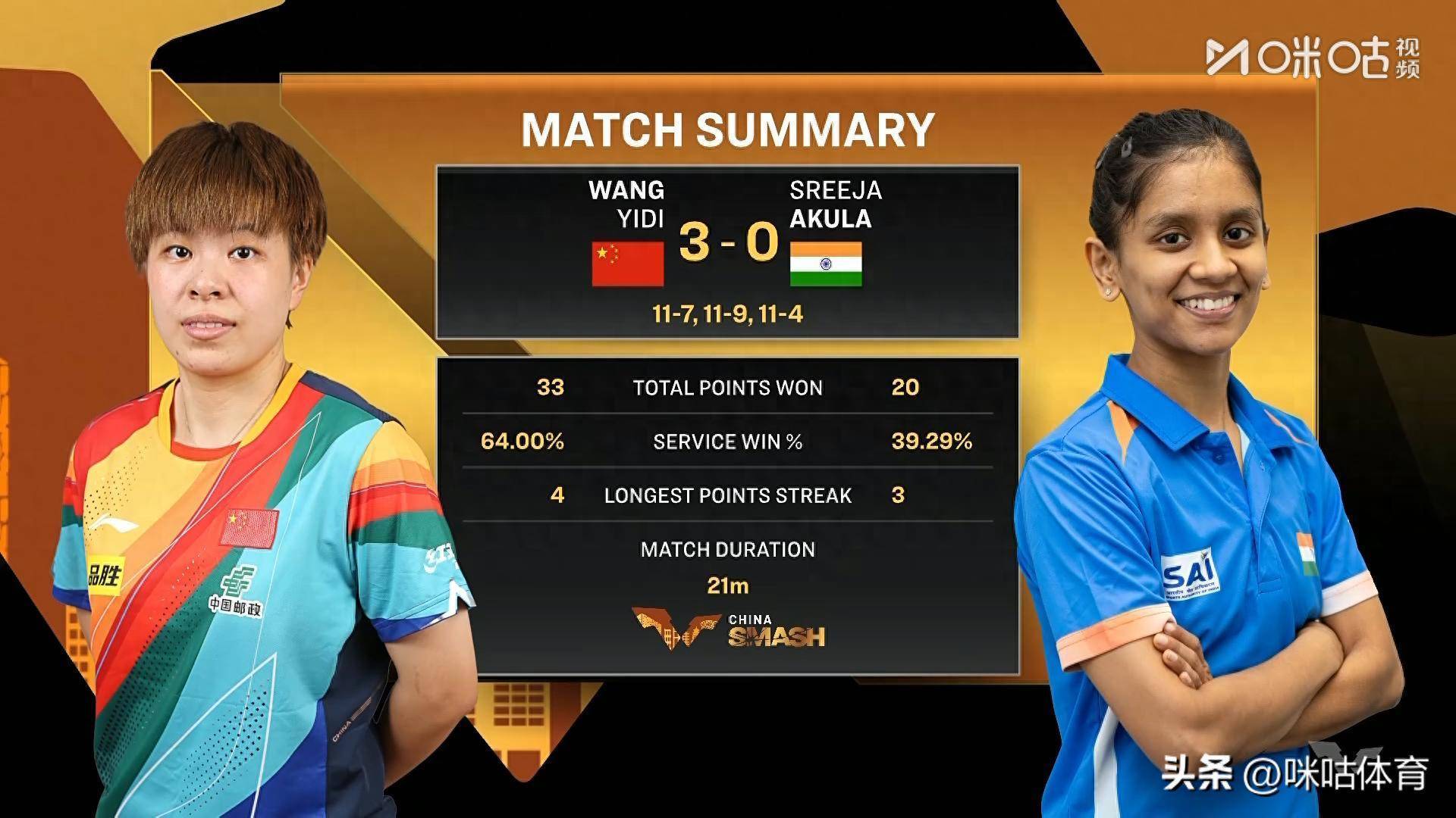 最终王艺迪3-0投诚斯莉嘉·阿库拉晋级女单16强(三局比分11-7、11-9、11-4),下轮她的敌手将是桥本帆乃香!